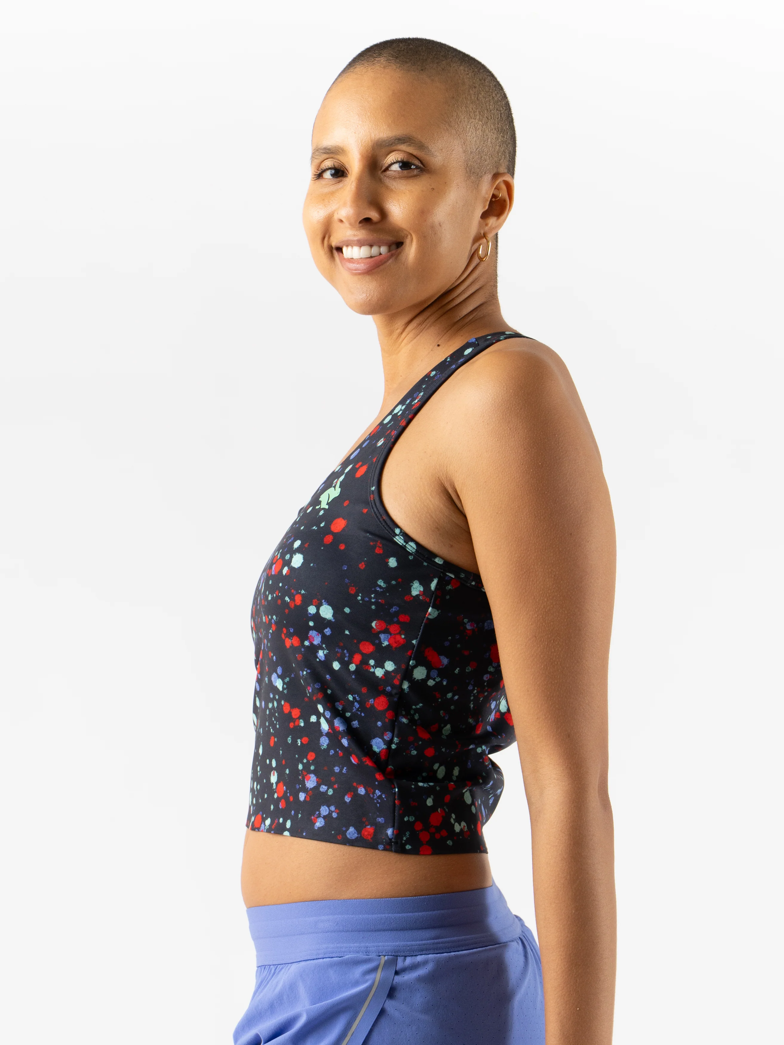 Responsibly-sourced silver ions in the recycled poly fibers fight bacteria and eliminate odor. Created from recycled coffee grounds, ice-cafe nylon in the bra liner also helps control odor, dries quickly, and feels cool to the touch. Welcome to your freshest race yet.