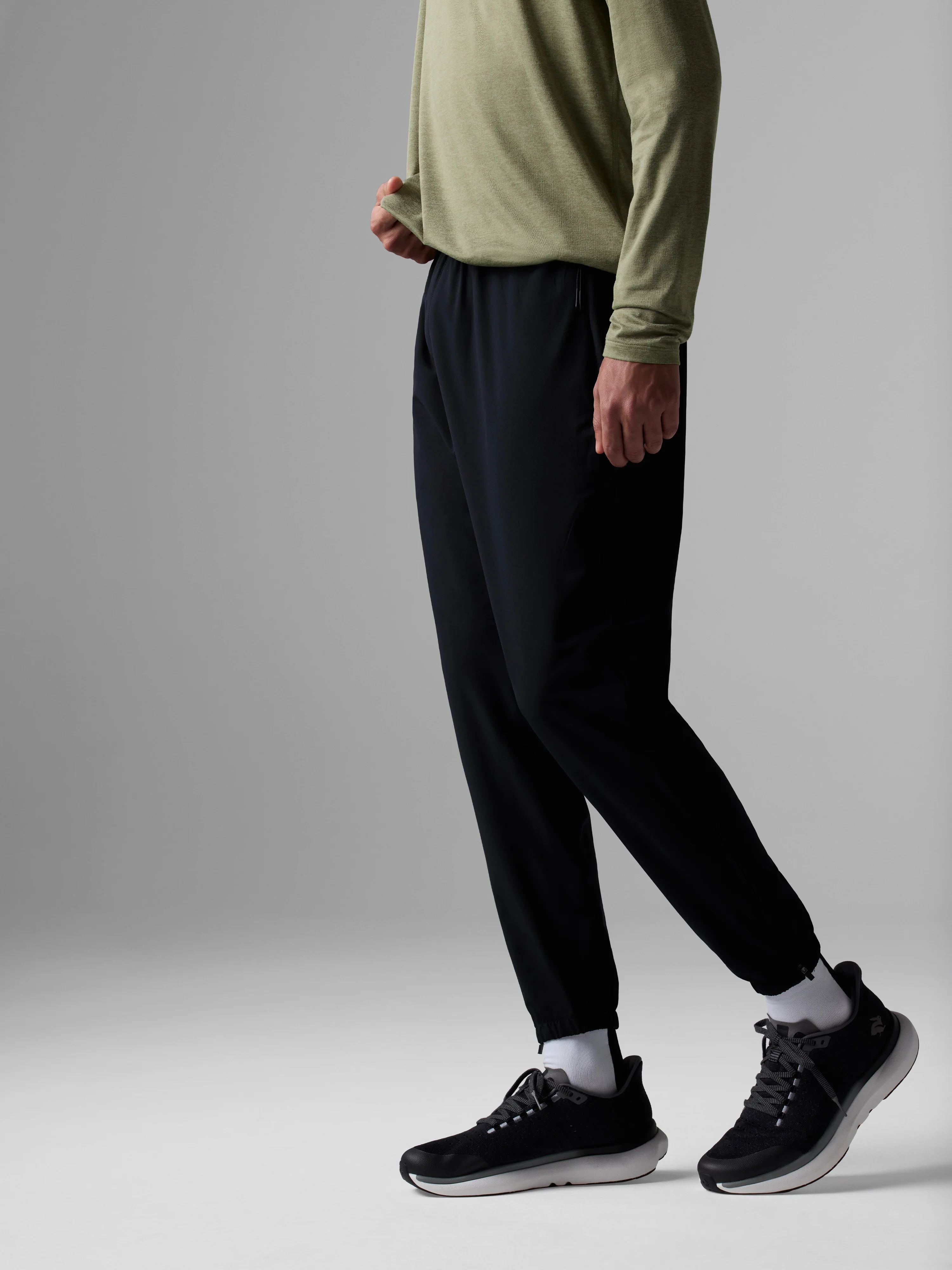 Meet your new favorite joggers for chilly runs. Made from woven stretch, these pants feature rad tech: fabric that removes moisture and stabilizes temps as well as an eco-friendly, water-resistant finish. Layer over tights, or style them solo with ankles unzipped.